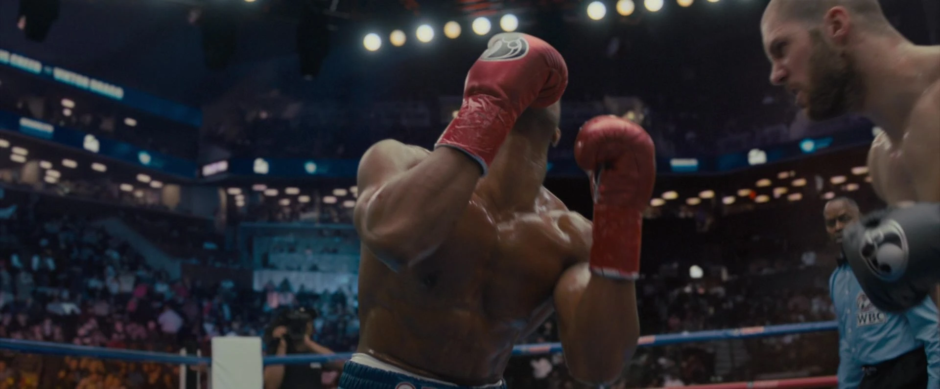 At Dodger Stadium, Donnie faces Dame in the "Battle of Los Angeles". During the fight Adonis and Dame blur out the surrounding crowd and imagen it just the two of them. In a grueling, evenly-matched affair, Donnie has visions of his abusive foster home and Dame's life in jail. During the last round Dame is able to knock Adonis down. With the support of his wife and daughter, Adonis is able to get and TKO Dame, reclaiming the WBC, WBA, WBO Heavyweight title. After the fight, Adonis goes to the locker room where Dame is recovering and the two have a heart to heart conversation, with Adonis apologizing to Dame for never checking up on him and Dame acknowledging that they were just kids when the incident happened. The two best friends reconcile and Adonis tells Dame that if he ever needs him, he'll be there.