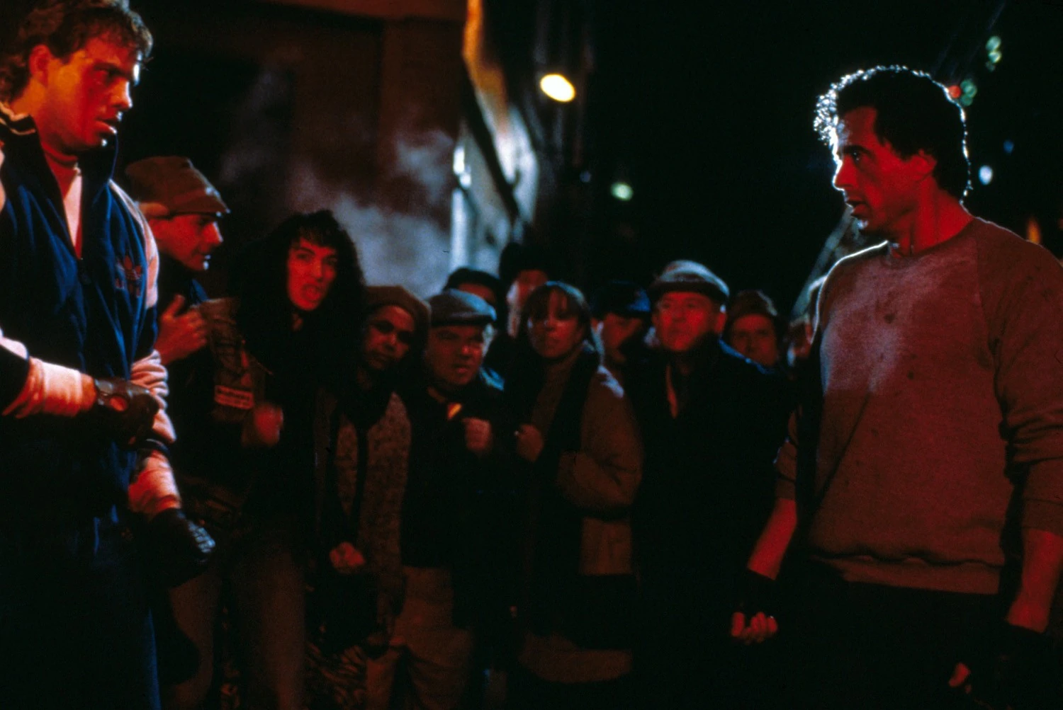 Later that night, Duke and Tommy, along with a small camera crew, went after Rocky in the city, heading to a local bar that Balboa hangs out at and challenging him to fight with Tommy. Duke's scheme went completely wrong when Tommy, in a fit of anger, punched down Rocky's brother-in-law, Paulie Pennino, who began criticizing him for treating Rocky so bad and even betraying him, as he was the one who brought him to victory. Rocky's reaction to this act was to challenge Tommy to try knocking him down now, adding that "his ring's outside.", much to Duke's dismay as he wanted both of them to fight in the official boxing ring.